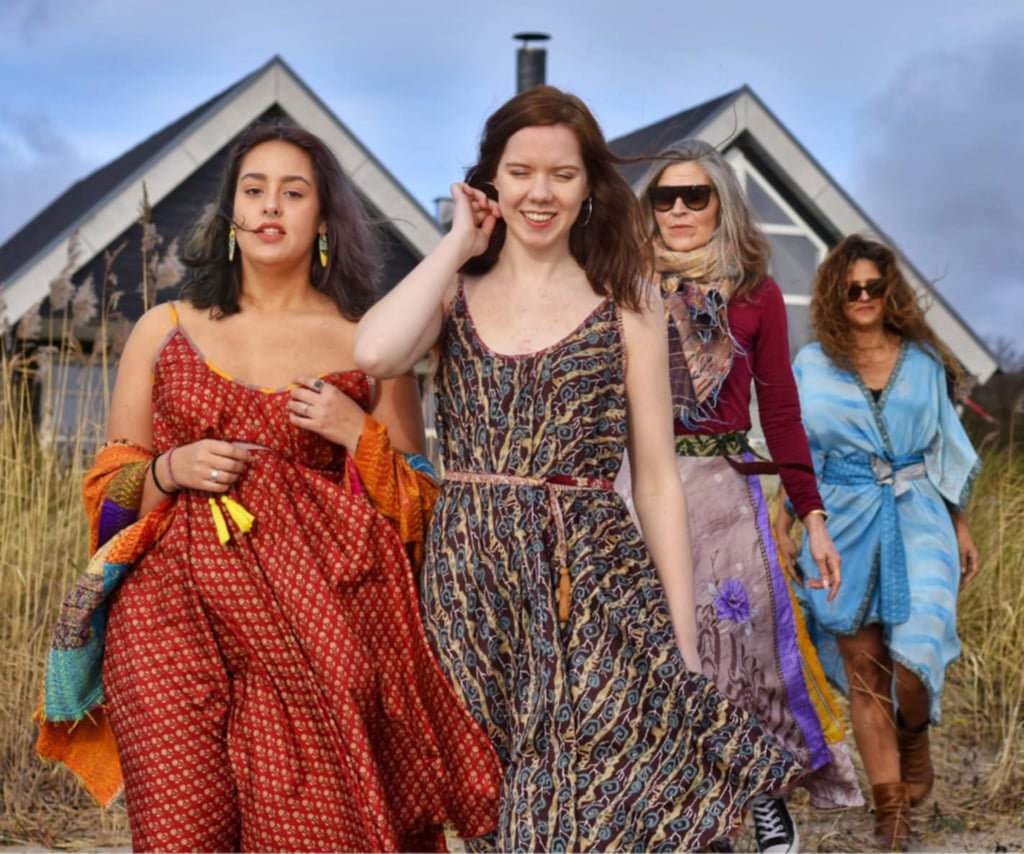 Nilsa takes vintage Indian sarees: fabrics once worn during weddings, celebrations, and everyday life, and gives them a new beginning. Each dress or kimono she creates carries a trace of its past: the rhythm of laughter, the whisper of a celebration, the dignity of time. You can feel it - in the softness of the fabric, in the way it moves.