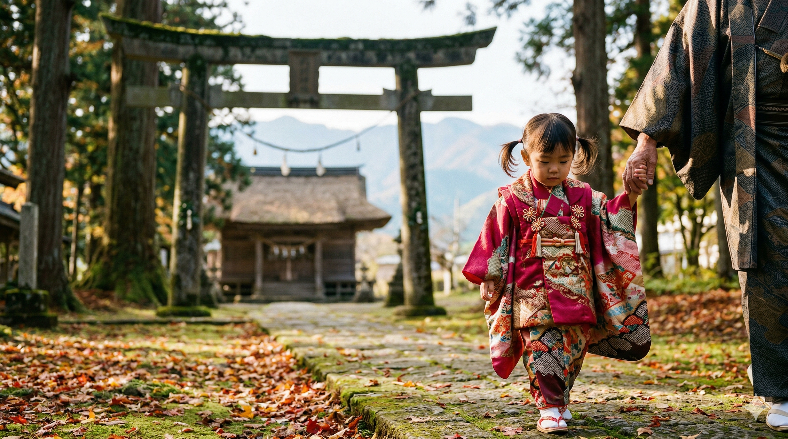 I love that image: small children in bright silk, standing before a shrine, as if the whole world were wishing them well.